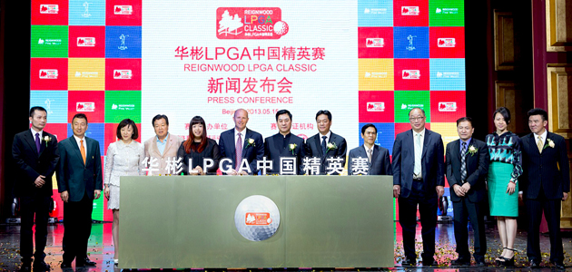 發(fā)布會上,華彬集團董事長嚴彬博士與美國女子職業(yè)高爾夫協(xié)會(LPGA)官員Jon Podany、中國高爾夫球協(xié)會(CGA)官員張小寧、中國女子職業(yè)高爾夫球巡回賽(CLPGA)官員潘仲光、北京市體育局領導許廣樹,昌平區(qū)常委、宣傳部長余俊生以及IMG國際管理集團領導朱亞當和中國大陸LPGA大滿貫第一人馮珊珊出席了本次新聞發(fā)布會。