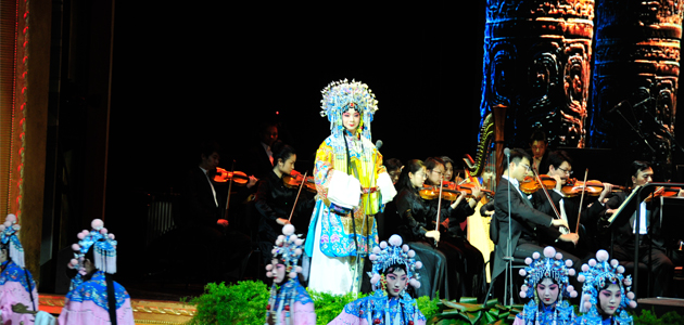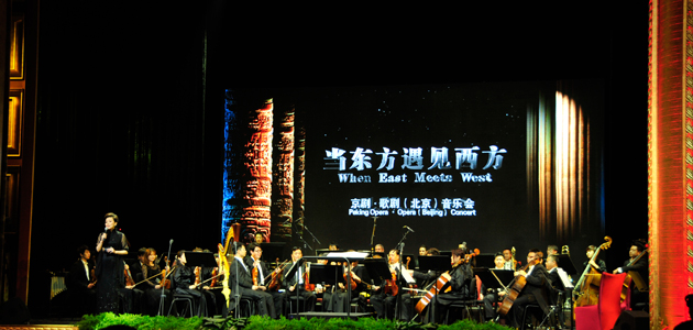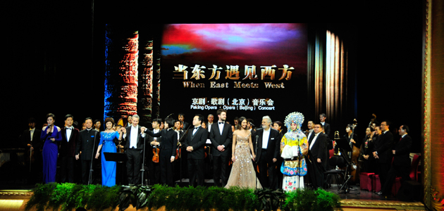 2013年10月9日,“當東方遇見西方” 京劇?歌?。ū本┮魳窌谌A彬歌劇院唱響,世界著名三大男高音之一普拉西多?多明戈攜手中國國家京劇院上演了一出精彩絕倫的歌劇與京劇“混搭”的交響樂。