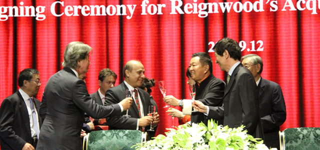 溫特沃斯前任主人Caprice集團(tuán)董事長理查德-克爾茵(Richard Caring)與華彬集團(tuán)副總裁、英國華彬投資有限公司總經(jīng)理倪松華共同簽約。隨后,雙方舉杯共慶這一歷史性時刻。嚴(yán)彬博士特地向理查德-克爾茵(Richard Caring)授予溫特沃斯球場終身榮譽會員資格。