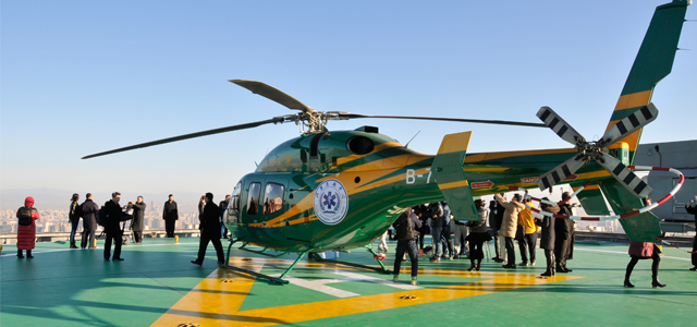 依托于中國國際貿易中心的地理優勢條件,由120北京急救中心配合專業急救團隊及華彬天星通航提供飛行服務保障,三方合作開辟了北京第一高樓急救航空通道。據介紹,120急救所使用的機型為貝爾429直升機,緊急救援時可降落在國貿大廈330米頂層停機坪運送傷病人員。曾在2014年8月14日降落三環送病人用的就是這架直升機,平穩降落安貞醫院旁圓滿完成任務。