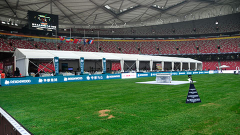 代表目前亞洲最高水準的專業馬術賽事——“2012北京國際馬術大師賽”510日在中國國家體育場“鳥巢”拉開戰幕,德國馬術之父”魯德格?比爾鮑姆領銜十二位世界頂尖馬術明星來京參賽,華彬馬會代言人朱美美在去年獲得第四名佳績后,今年再次代表中國參賽華彬集團作為該國際賽事的鉆石贊助商全方位助力該賽事的舉行。